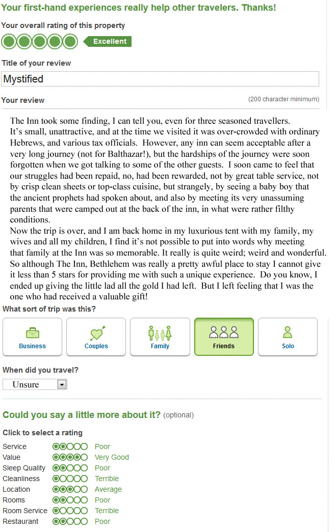 "It turns out that thousands of people are having a look at this webpage, so we thought it might raise a bit of money for a good cause. If you think babies deserve a healthier start in life than this dubious Inn provides I suggest you give some of your gold to the Save the Children charity this Christmas. Thank you.”